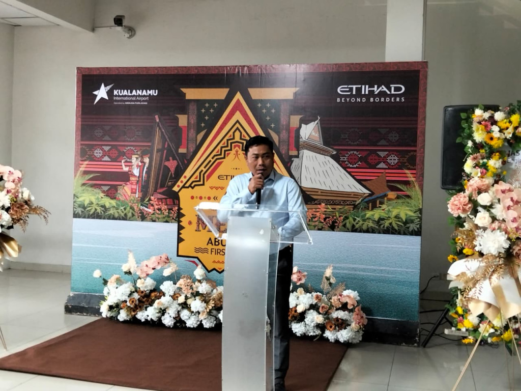 Akses penerbangan langsung ke Abu Dhabi ini ditandai dengan Inaugural Flight Ceremony Etihad Airways (EY) Penerbangan Perdana Maskapai Etihad Airways (EY) Rute Abu Dhabi - Kualanamu (AUH-KNO) di Bandara Internasional Kualanamu, Jumat (3/10/2025).